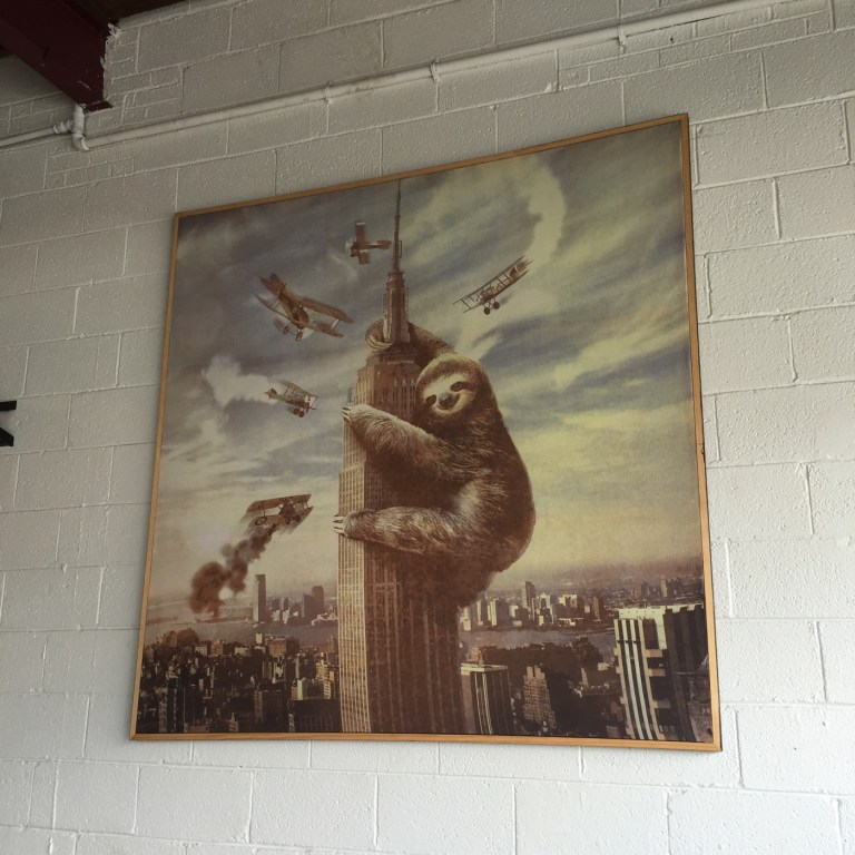 I mean, check out this huge print hanging on their wall! Sloth-zilla? Where else would you expect to find something like this?