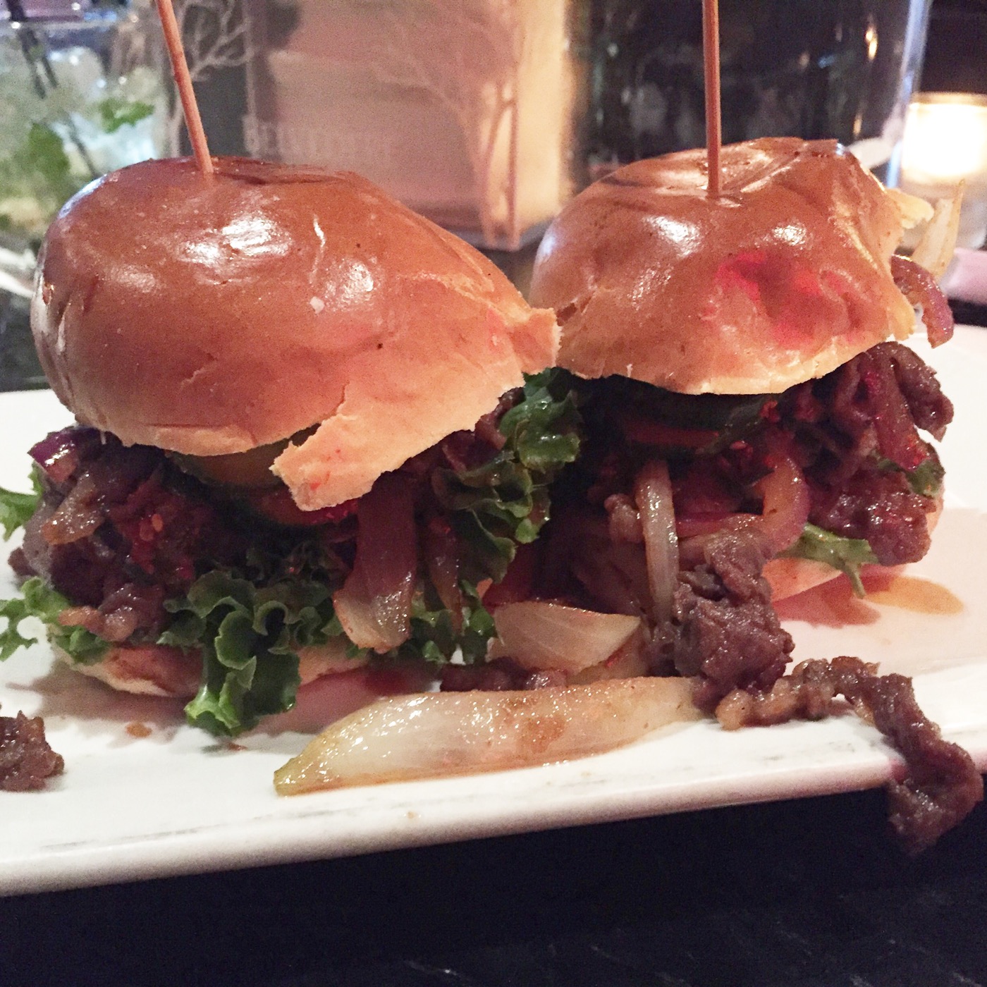 Bulgogi sliders. Freaking phenomenal. Savory Korean BBQ beef with spicy pickled veggies, fresh crisp lettuce, and a soft bun that soaks up all the flavors…a perfect combination of East meets West.