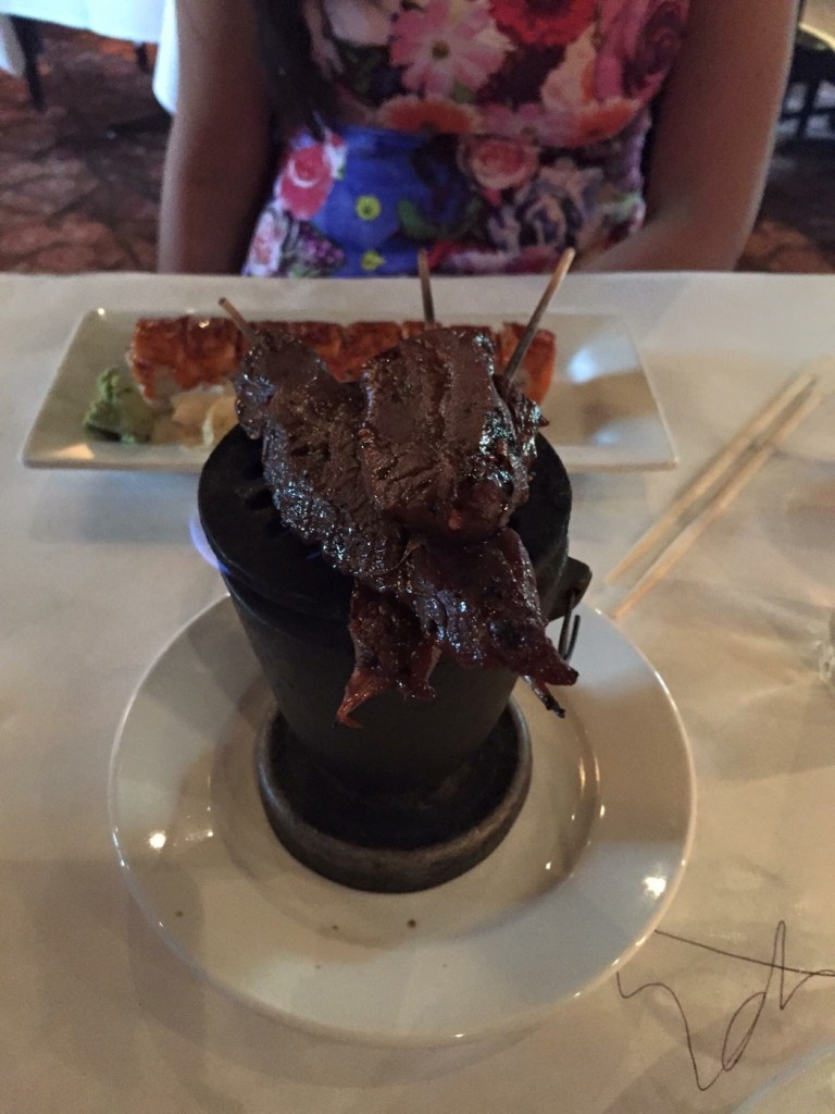 Bali Maki. Basically, this is a marinated stick of meat served to you on a personal grill. Brilliant. The beef is always so juicy and tender, with an amazing burst of flavor. Reminds me of Asian street food, but on a classier level.