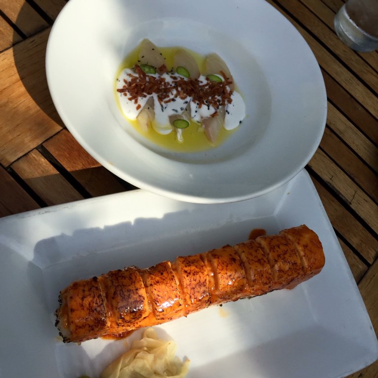 Yellowtail Coconut crudo and another order of Salmon on the Beach. Seriously, that roll is like crack.