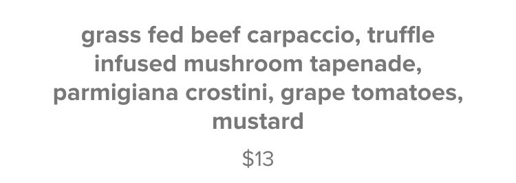 The beef was very mild in flavor, which is perfect. The accompaniments however, did not suit the likings of my non mushroom loving friends. It lacked salt…that, which is certainly made up for with a bite of the mushroom tapenade and the parmigiana crostini. When eaten together, it is perfection. If you do not fancy mushrooms, the lack of salt in the dish is more than apparent. While unfortunate for my friends, I was quite pleased, as I LOVE [most] mushrooms!