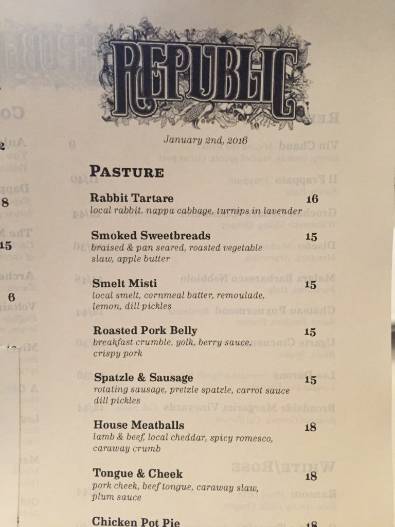 Republic, this duck dish was your last opportunity of the night to impress me…why must you fail so hard? Why did you butcher this beautiful duck into tasting like something I could get at Bob Evans?