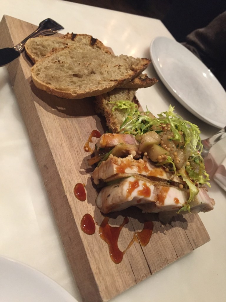 Above is the Foie Gras Terrine, which allegedly featured house pork belly, smoked trout, carmelized Michigan apple, apple mustard, whipped blue cheese, and walnut. I say “allegedly” because the whipped blue cheese and walnut were nowhere to be found in or around this dish….which quite frankly, is fine with me because I don’t like blue cheese.