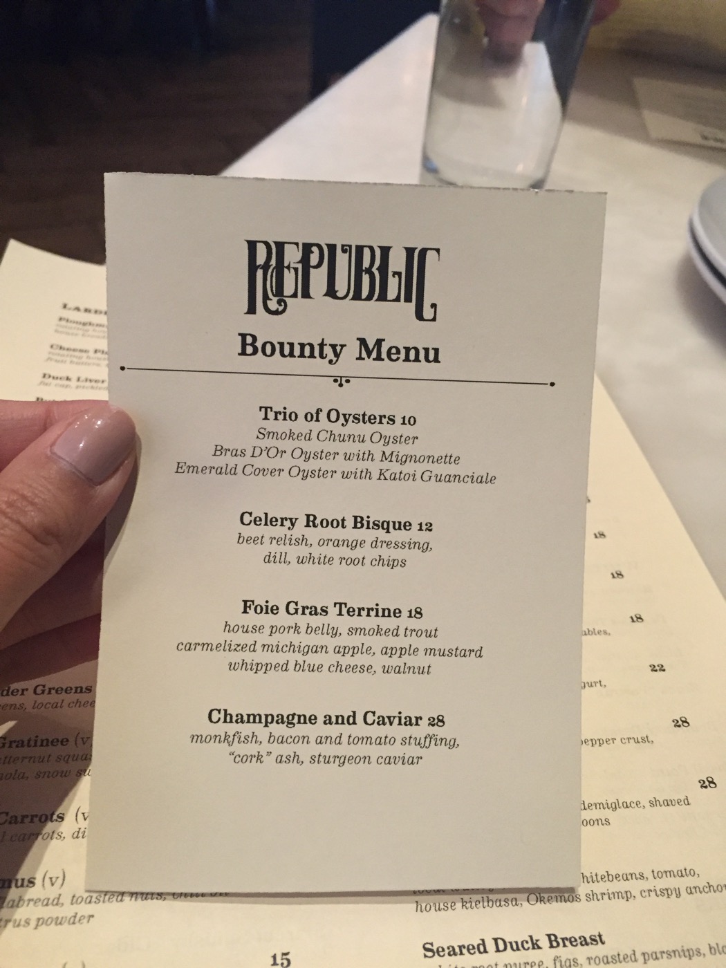 Republic, this duck dish was your last opportunity of the night to impress me…why must you fail so hard? Why did you butcher this beautiful duck into tasting like something I could get at Bob Evans?