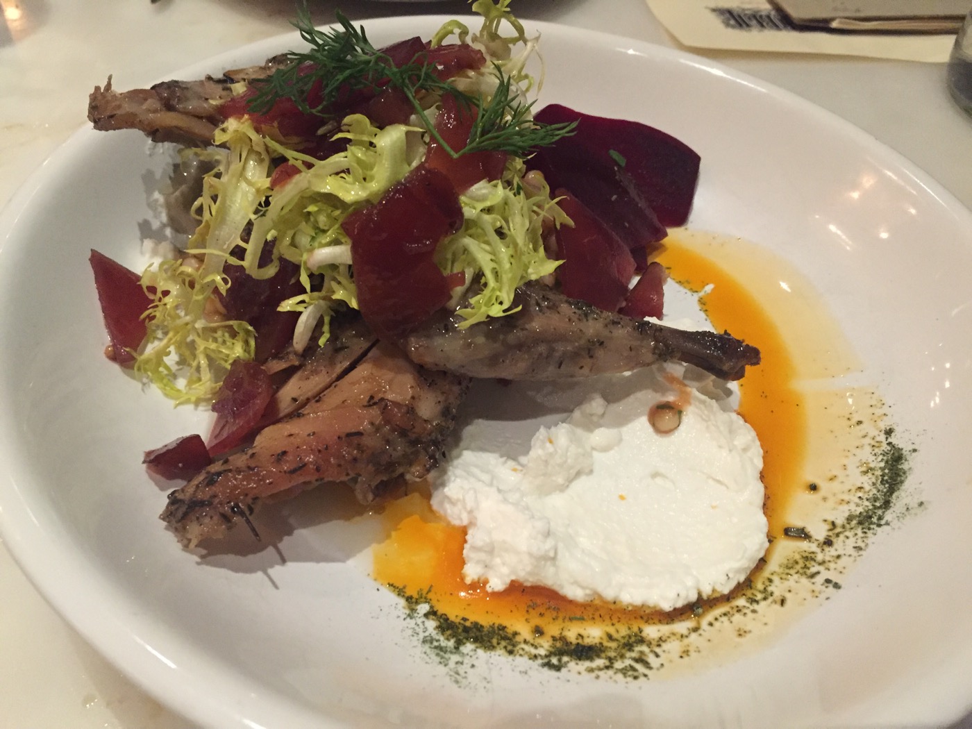 They must have run out of yellow beets because I got normal red beets. The protein was cooked marvelously, but the “smoked yogurt” did not lend any sort of positive addition to the dish. It was completely unnecessary, as it was too tart and not smoky at all. Either way, it could have been better. In fact, it SHOULD have been better.