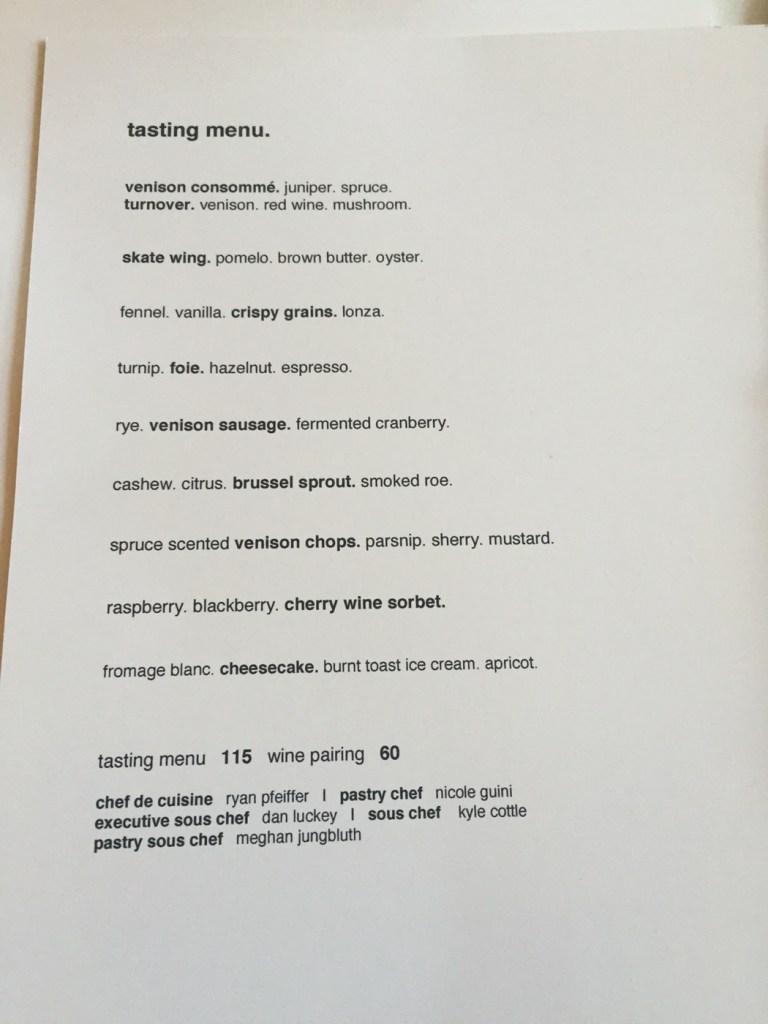 Pictured above are both the regular menu, as well as the tasting menu. We opted for the tasting.