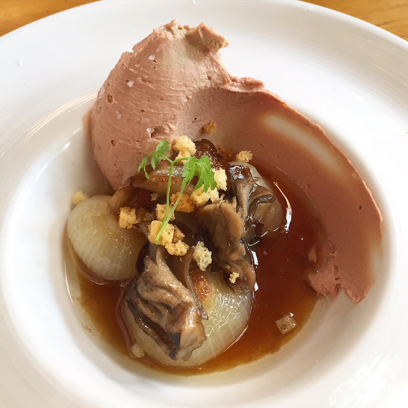 Modern spin on the classic liver and onions. Amazingly smooth liver smear with sweet onions in an incredible sweet and savory jus. Delicious.