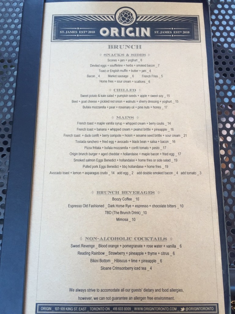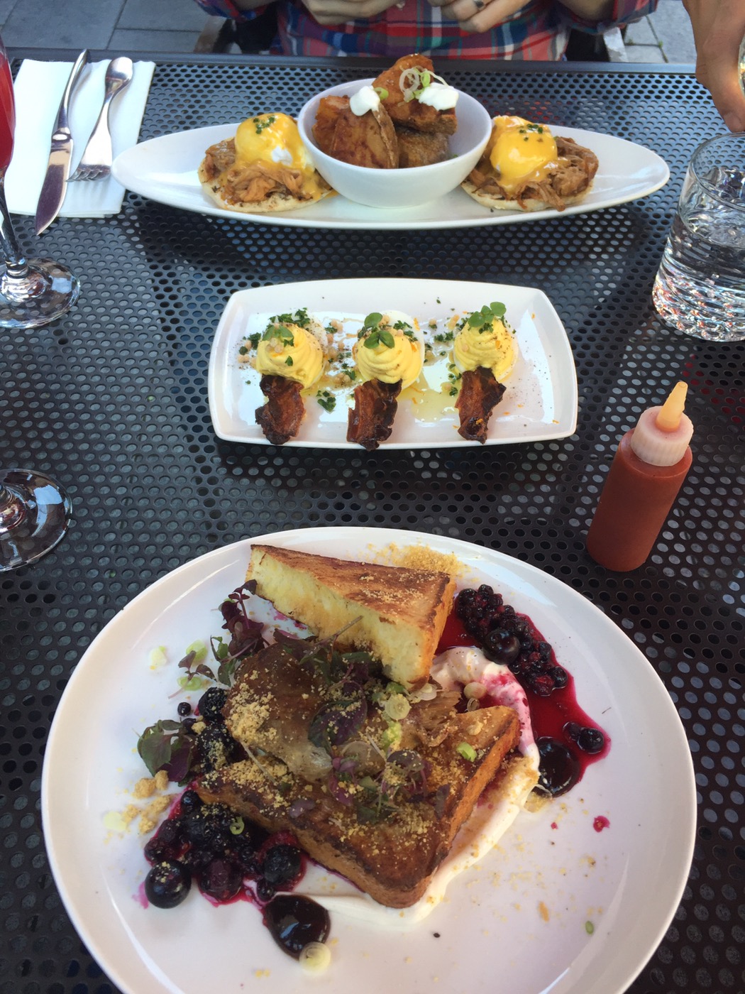 This entry was one day’s worth of food adventures. Started off with some awesome brunch, then explored a wonderful farmer’s market, coffee….then the Distillery District where we went and drank a ton of beer, sake, and ate amazingly fresh oysters…and finished off the day at a top rated restaurant for dinner.