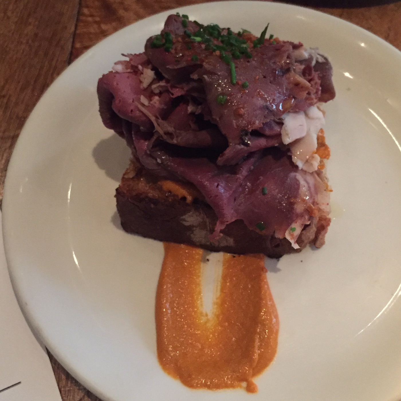 My husband ordered this. It was reminiscent of the beef tongue we had in Toronto…delicious.