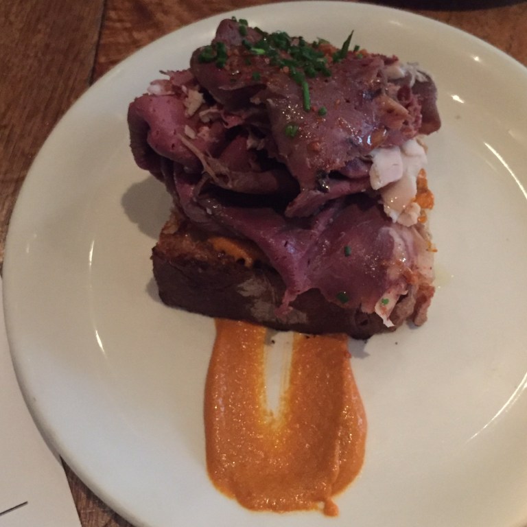Corazon: smoked beef heart with romesco on toast.