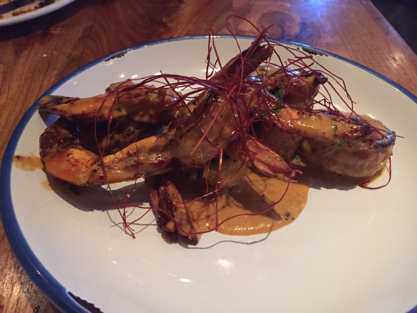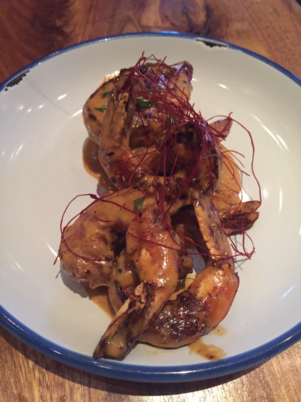 Beautifully cooked prawns. Super rich, garlicy, spicy, incredible. I wish these were in a larger portion!