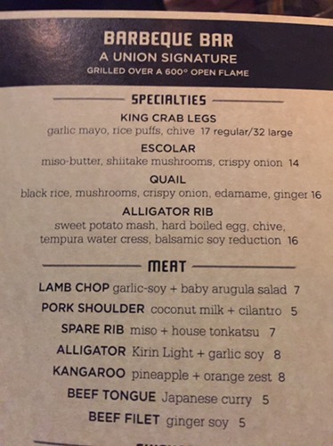 Alligator and Kangaroo…two proteins that I can say I have tried, thanks to Union Sushi. Never in my life did I ever find myself with an occasion to try Kangaroo (not even when I was in Australia), until one fateful night in Chicago.