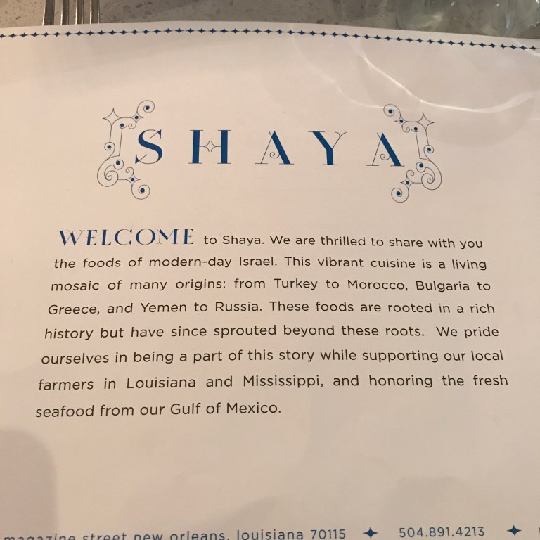 The best restaurant we went to while we were there was a highly acclaimed Israeli restaurant. Being from metro Detroit, my husband and I are very familiar with Mediterranean, middle-eastern cuisine, and Jewish Deli’s. We never thought there was such a perfect combination of everything we loved. After days of Creole/Cajun seafood, this place offered a phenomenally executed contrast in flavors….and probably the only vegetables we saw all week.