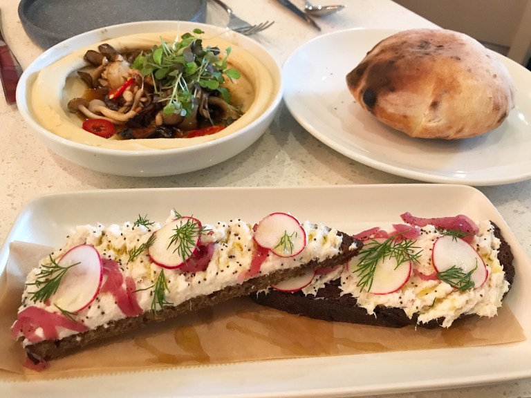 Because the menu seemed so underwhelming, we asked for some recommendations. The waiter suggested the mushroom hummus and the pumpernickel rye with whitefish.