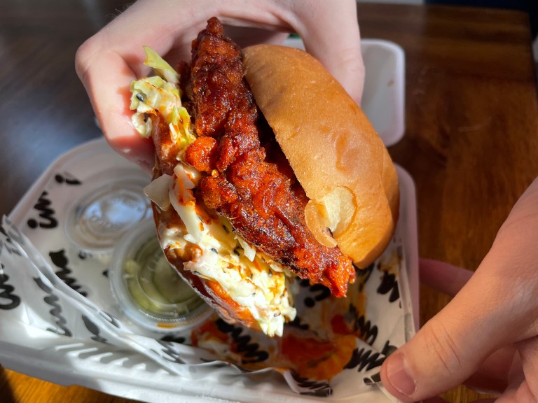 I love Ima’s udon and spicy ramen, so I hate to give them a subpar rating on their chicken sandwich. If you opt for the spice on the side, it really changes things. Ordering it spicy is the root of its downfall. The spice that they use is a chili oil, so you’re left with a super greasy sandwich. The chili oil drowns out all other tastes, and ends up being a pure spice bomb in your mouth. If you enjoy having your mouth on fire and crying while you eat, you may fall in love with this. I might just be a pansy when it comes to this level of spice, but I enjoy more than just heat in my mouth, and this isn’t it for me.